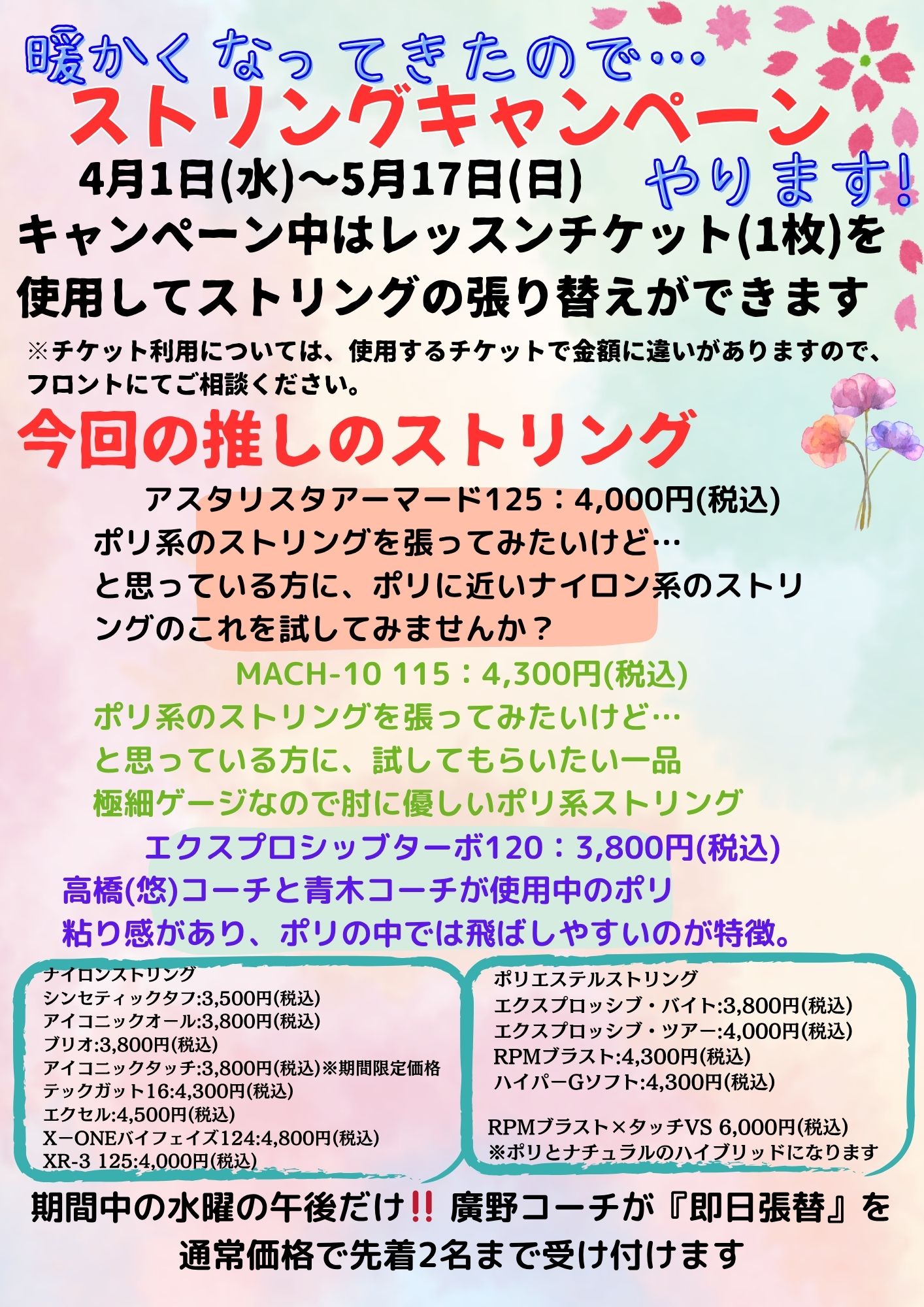 4月コーチ代行表のお知らせ